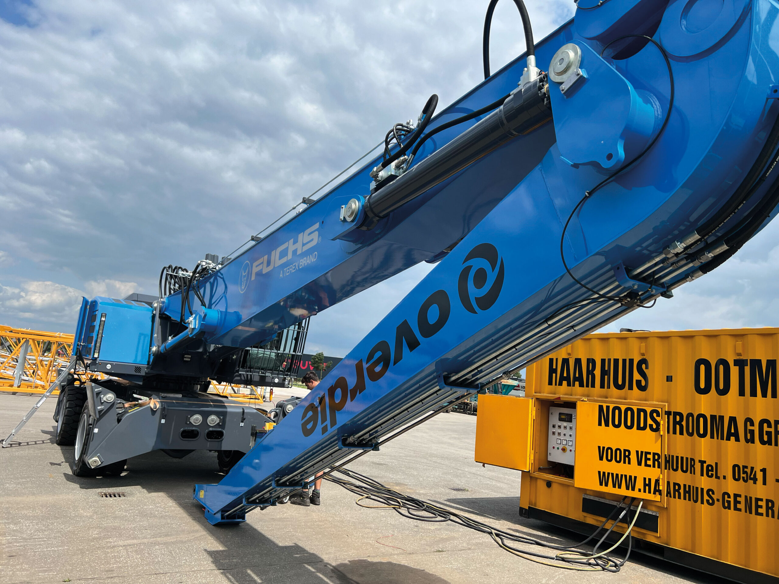 Voor Overdie Metals hebben we een Fuchs overslagkraan voorzien van hun logo’s in het zwart, perfect passend bij de andere machines op het terrein. De logo’s zijn aangebracht op de arm van de kraan, waardoor het bedrijf herkenbaar blijft tijdens het dagelijkse werk. Zo is functionaliteit gecombineerd met een sterke, uniforme uitstraling.