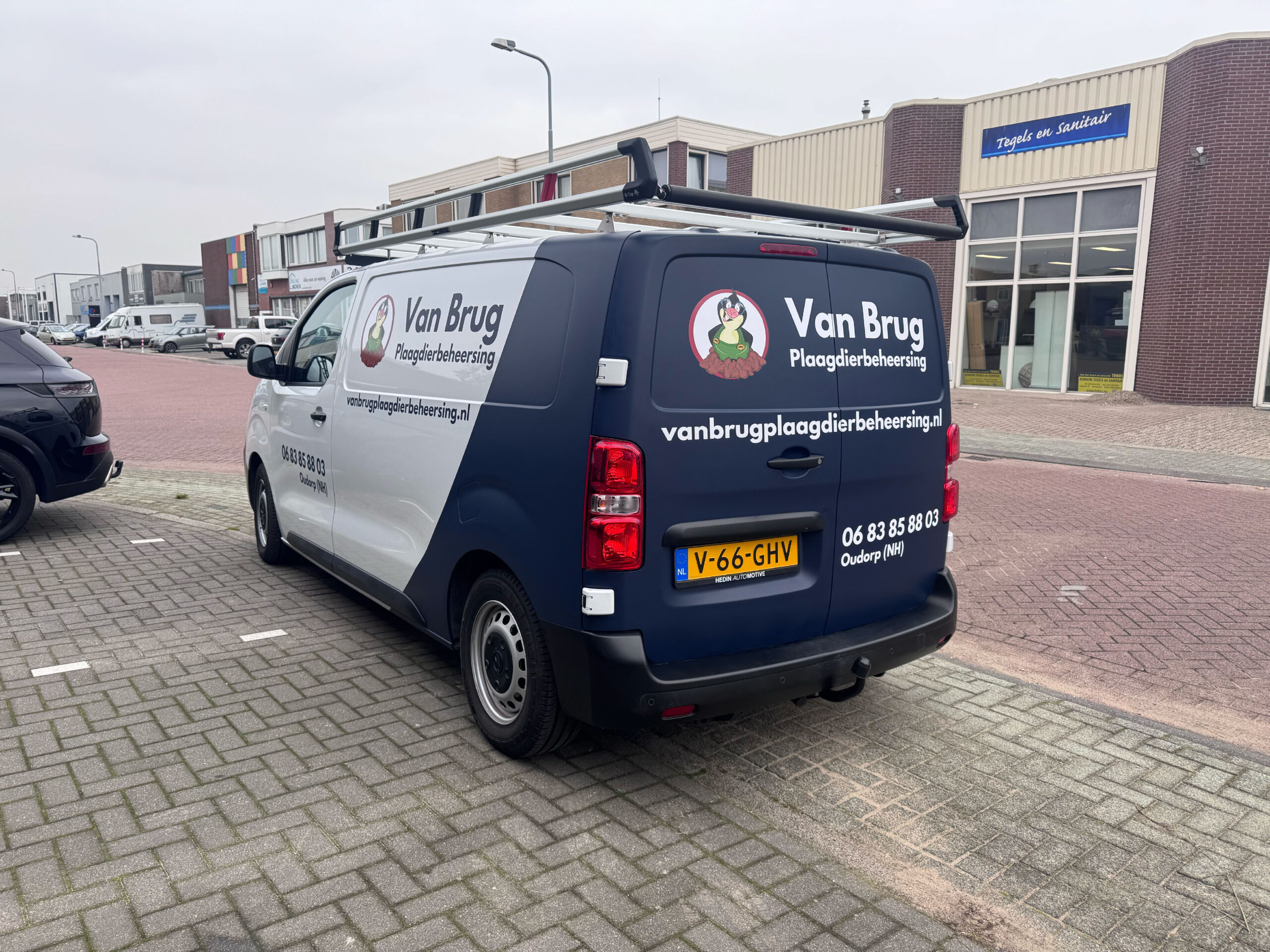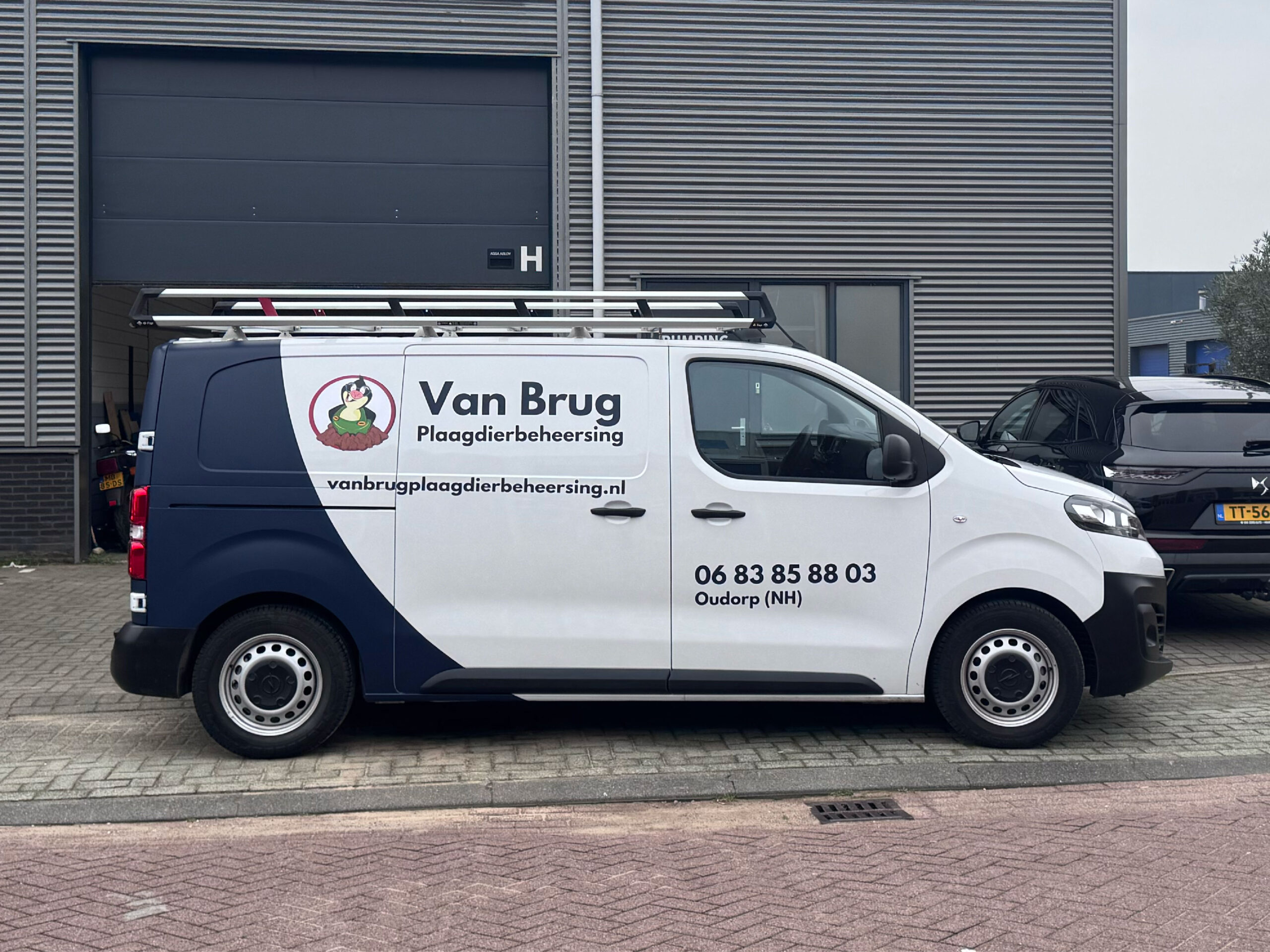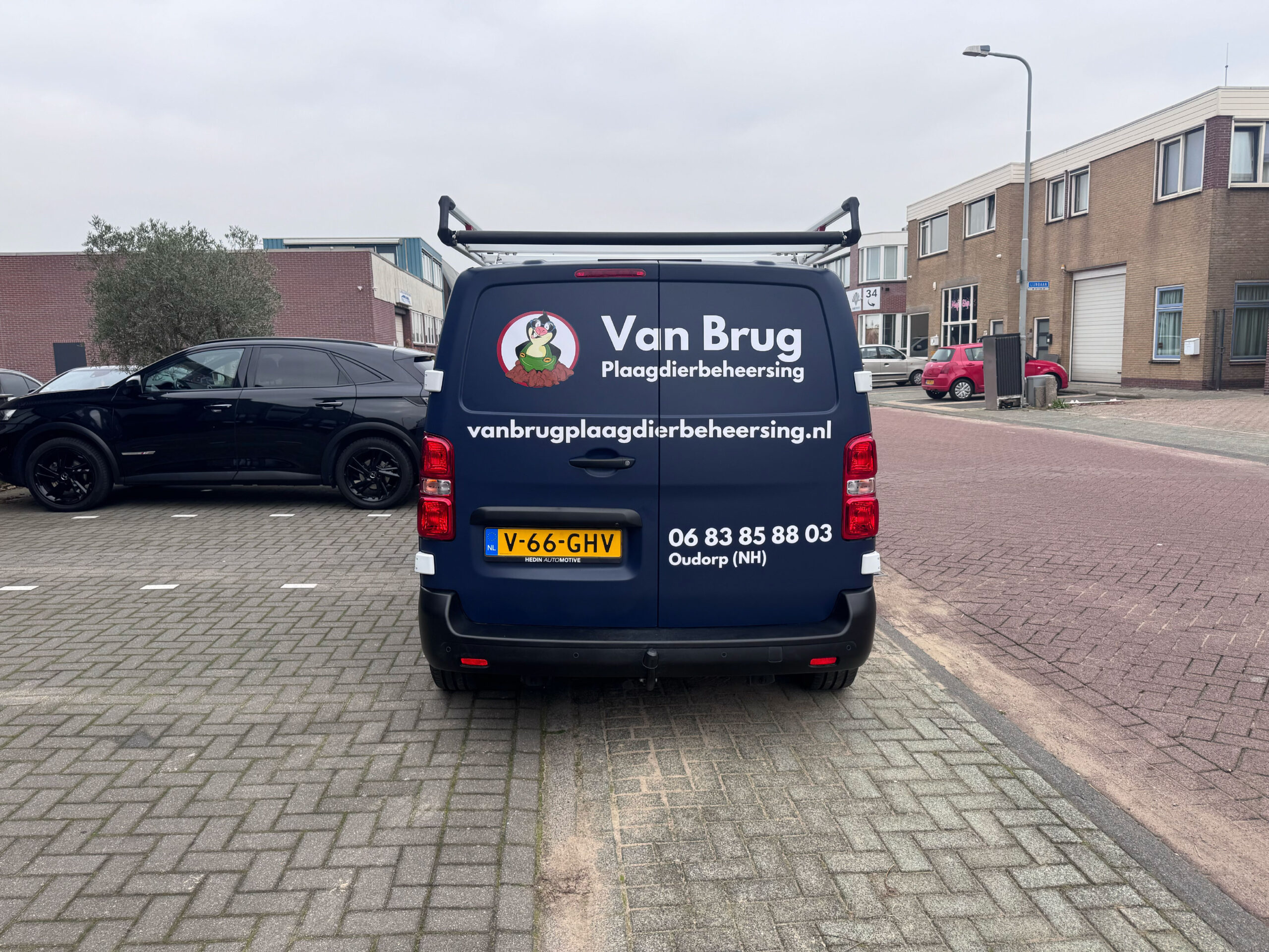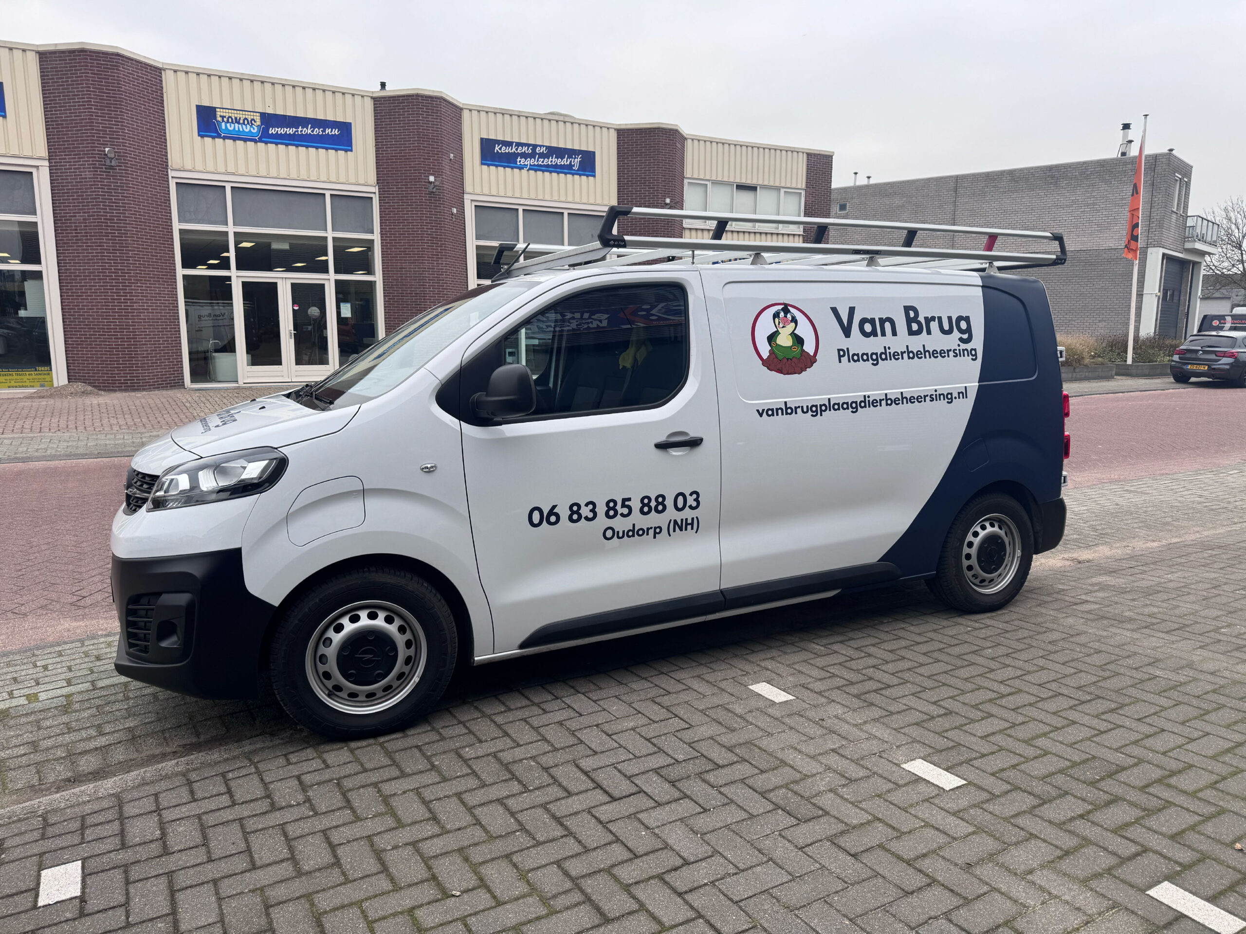 Voor Van Brug Plaagdierbeheersing hebben we hun nieuwe bedrijfsbus een strakke en professionele uitstraling gegeven. De witte bus is deels gewrapt met een donkerblauwe folie, die vanaf de achterkant doorloopt naar de zijkant. De belettering en het logo zijn contrasterend toegepast: wit op de blauwe wrap en blauw op het witte deel van de bus. Als finishing touch hebben we het herkenbare logo in full color op alle zijden, inclusief de voorkant, aangebracht.